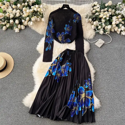 Bralette Top and High Slit Thigh Skirt Set - Colorful