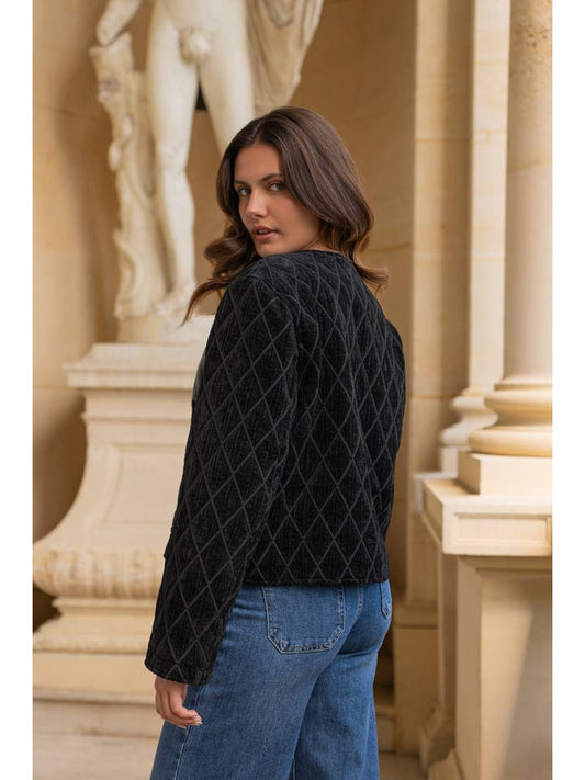 Luxury Velvet Double Breasted Black Dress Jacket Gold Buttons