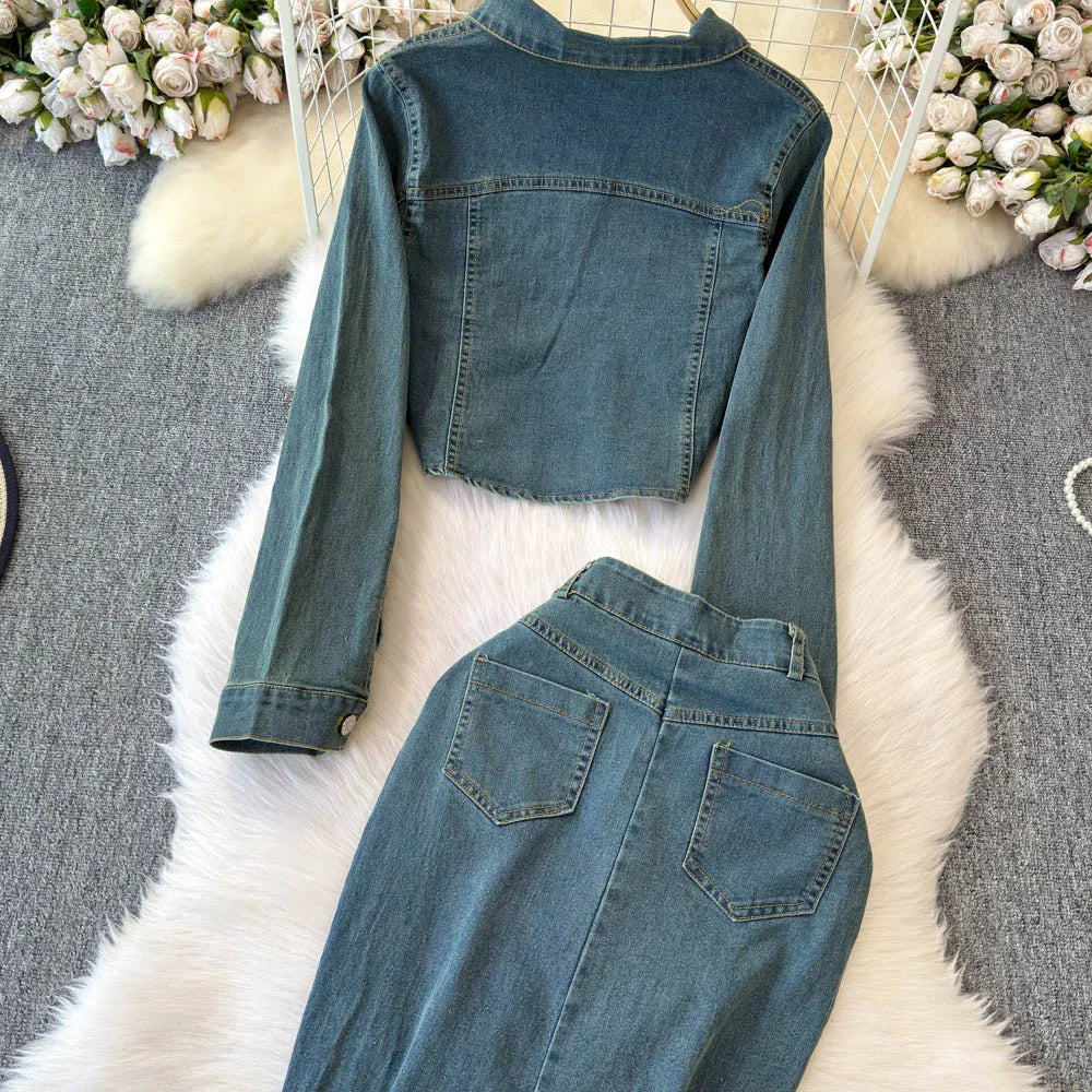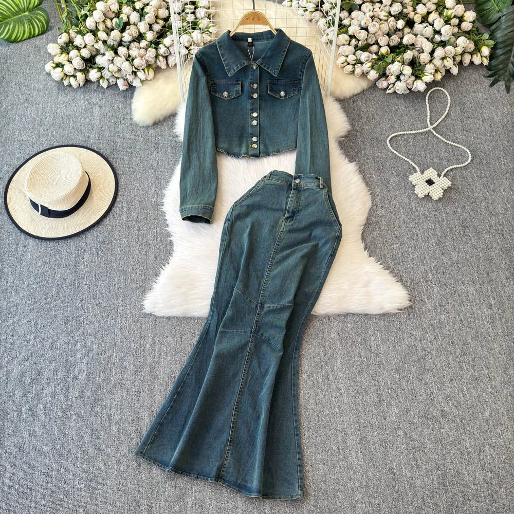 Fishtail Skirt Vintage Denim Two-Piece Set