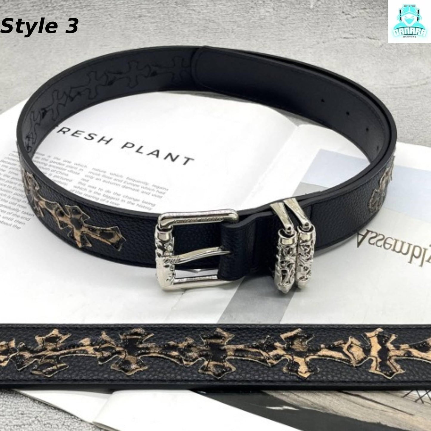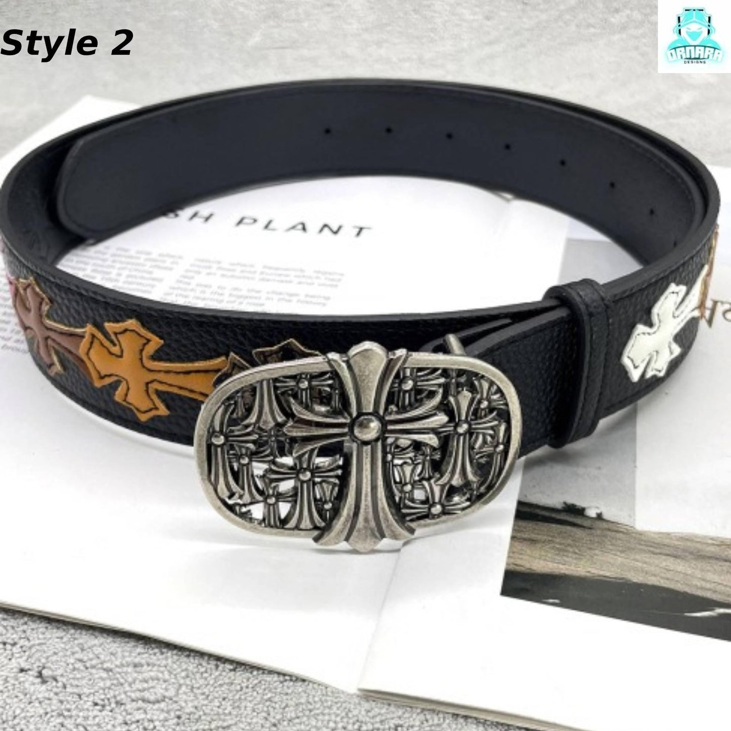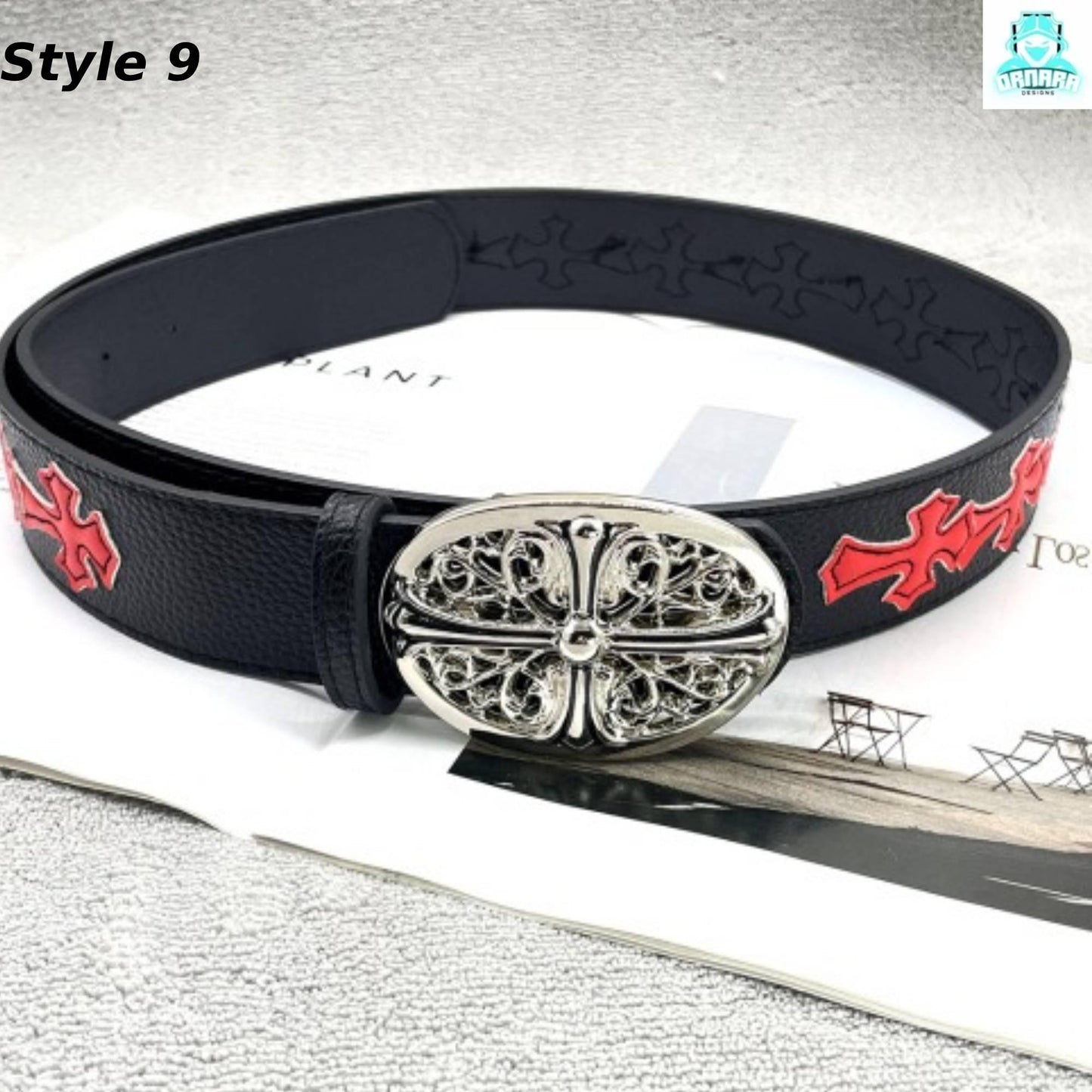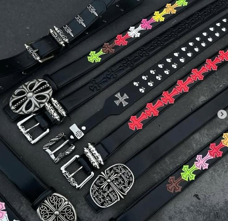 A striking lineup of handcrafted leather belts featuring bold cross motifs and unique, detailed metal buckles. This collection blends gothic, punk, and streetwear influences with elements like colored enamel crosses, embossed patterns, and studded accents. The ornate silver-tone buckles range from floral-inspired designs to intricate geometric styles, making each belt a standout accessory for those who appreciate edgy, statement fashion. Perfect for adding a bold finishing touch to any outfit.