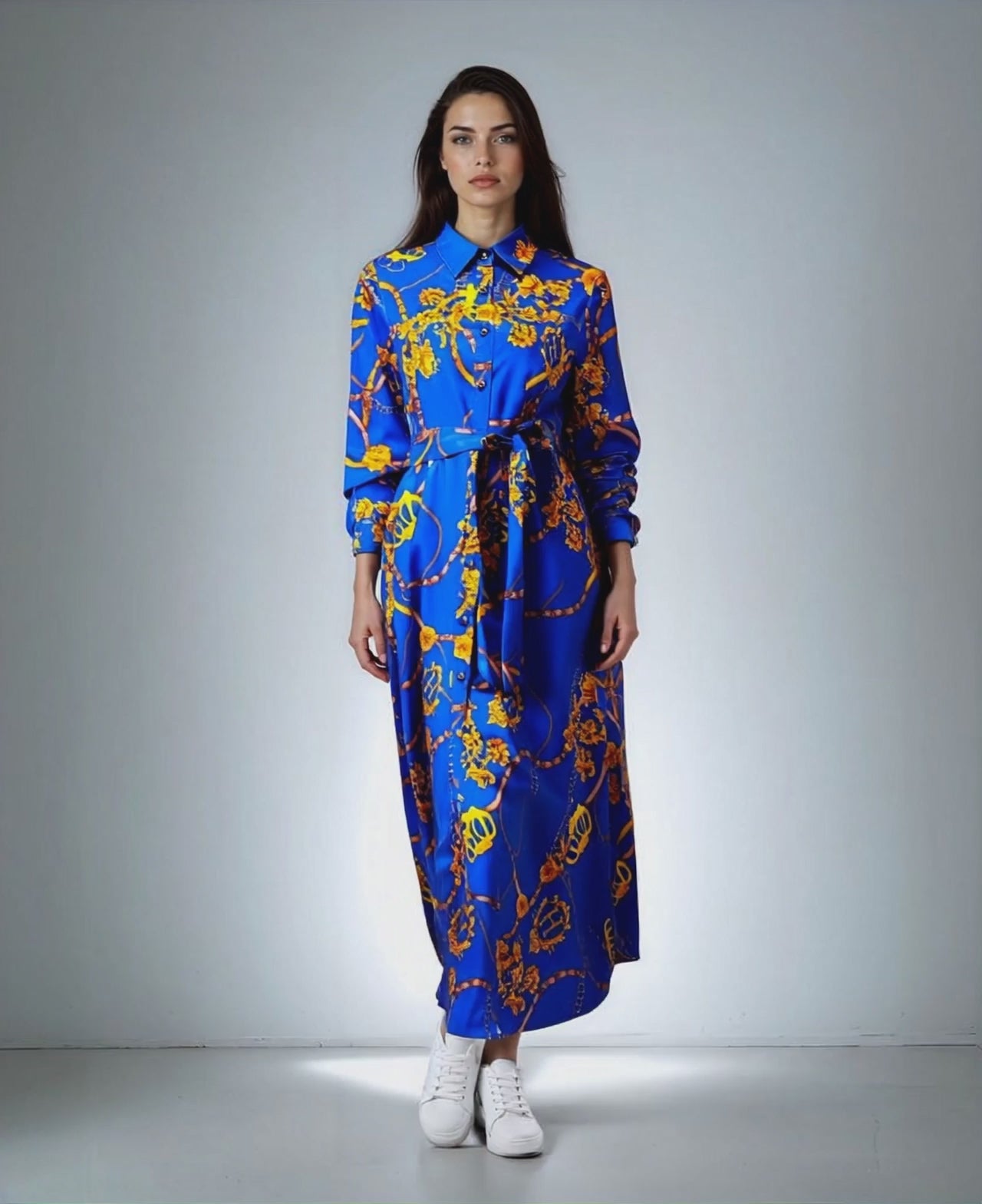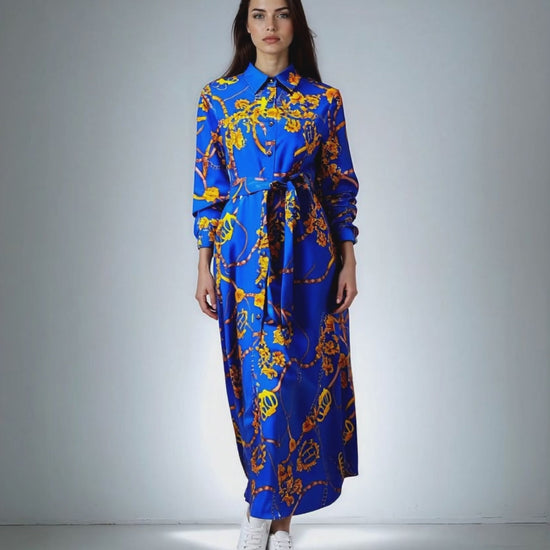 One of the key benefits of this dress is its ability to flatter different body types with its fitted waist and wide swing skirt, creating a balanced and elegant silhouette. Its versatility allows you to wear it in a variety of settings—from a business meeting to a weekend brunch—without compromising comfort or style. The breathable fabric keeps you cool and comfortable, while the classic shirt-dress structure adds a touch of sophistication. This dress not only elevates your everyday wardrobe but also makes you feel effortlessly confident and chic.