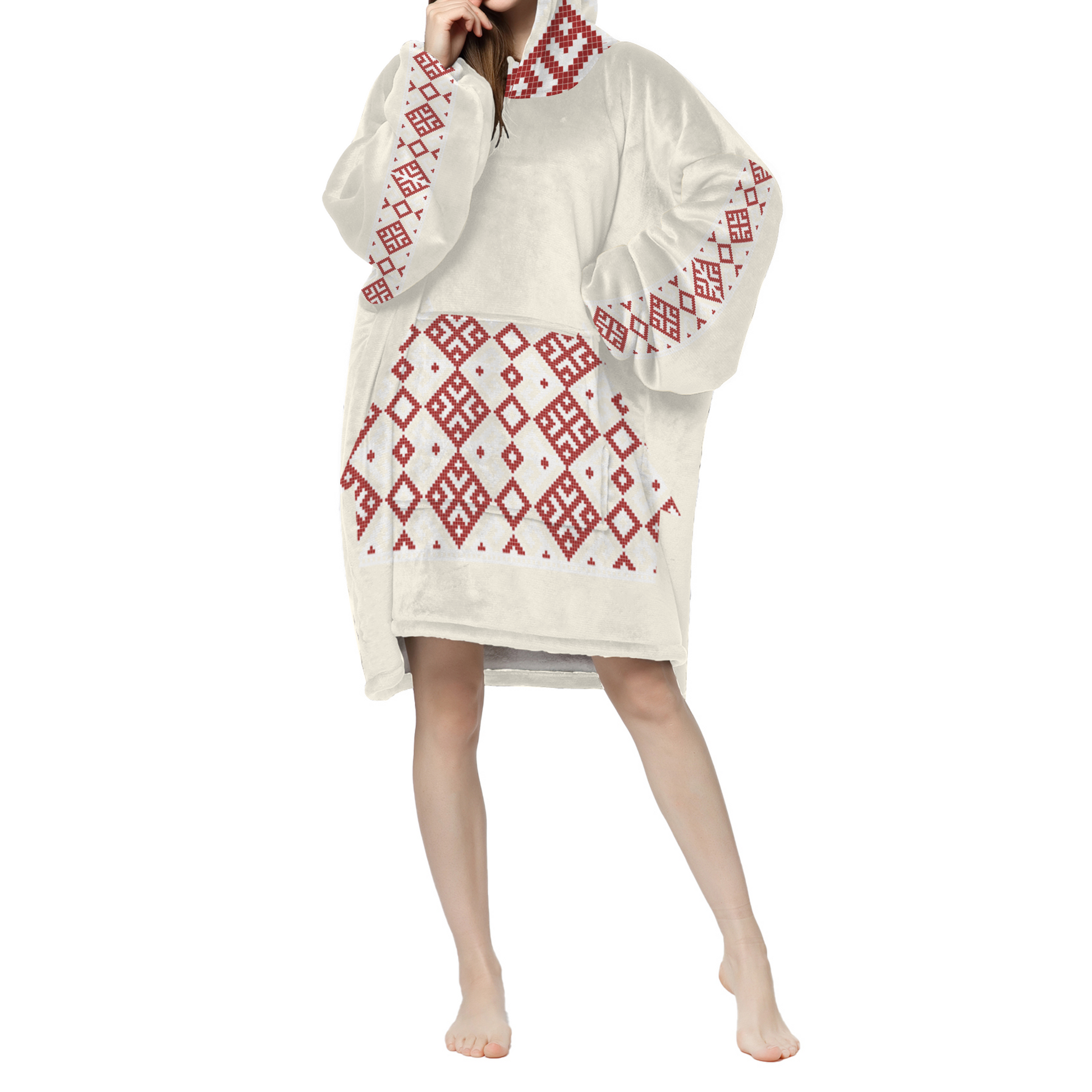 Indulge in warmth and cultural flair with the  Embroidery Long Sherpa Hooded Blanket. This luxurious blanket combines the plush softness of sherpa fabric with a striking fake embroidery design inspired by traditional patterns. The long, hooded design offers ample coverage and a cozy fit, making it perfect for lounging at home or adding a touch of style to your casual wear. The high-quality sherpa material provides exceptional warmth, while the cultural design adds a unique and elegant touch to your relaxation routine.