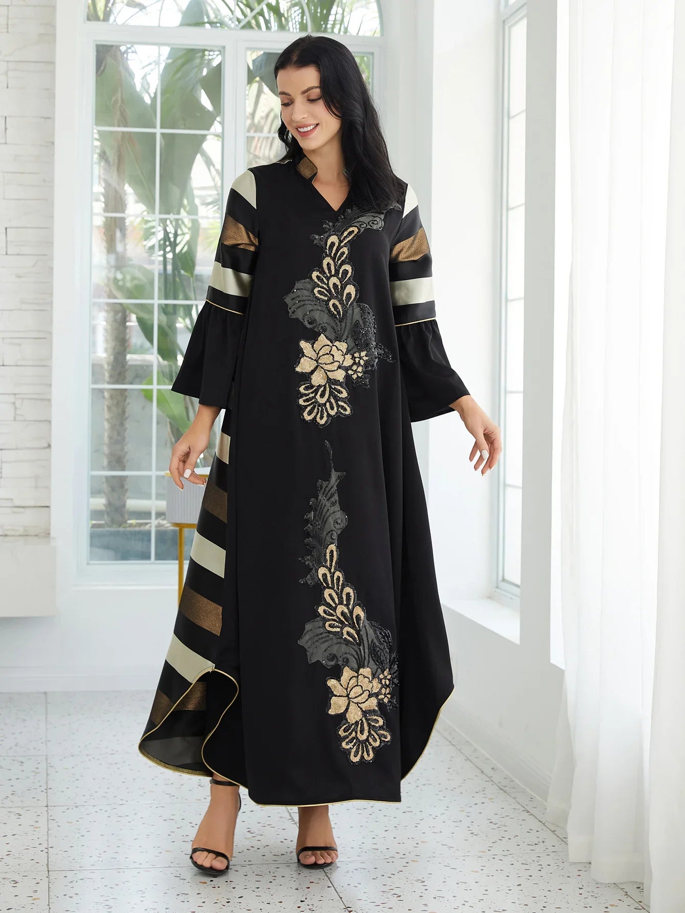This jalabiya is perfect for women who appreciate understated elegance with a modern twist. Its versatile black color, combined with distinctive striped patchwork, makes it easy to style while standing out effortlessly. Ideal for casual gatherings or formal settings, it is a wardrobe essential that balances style, comfort, and sophistication.