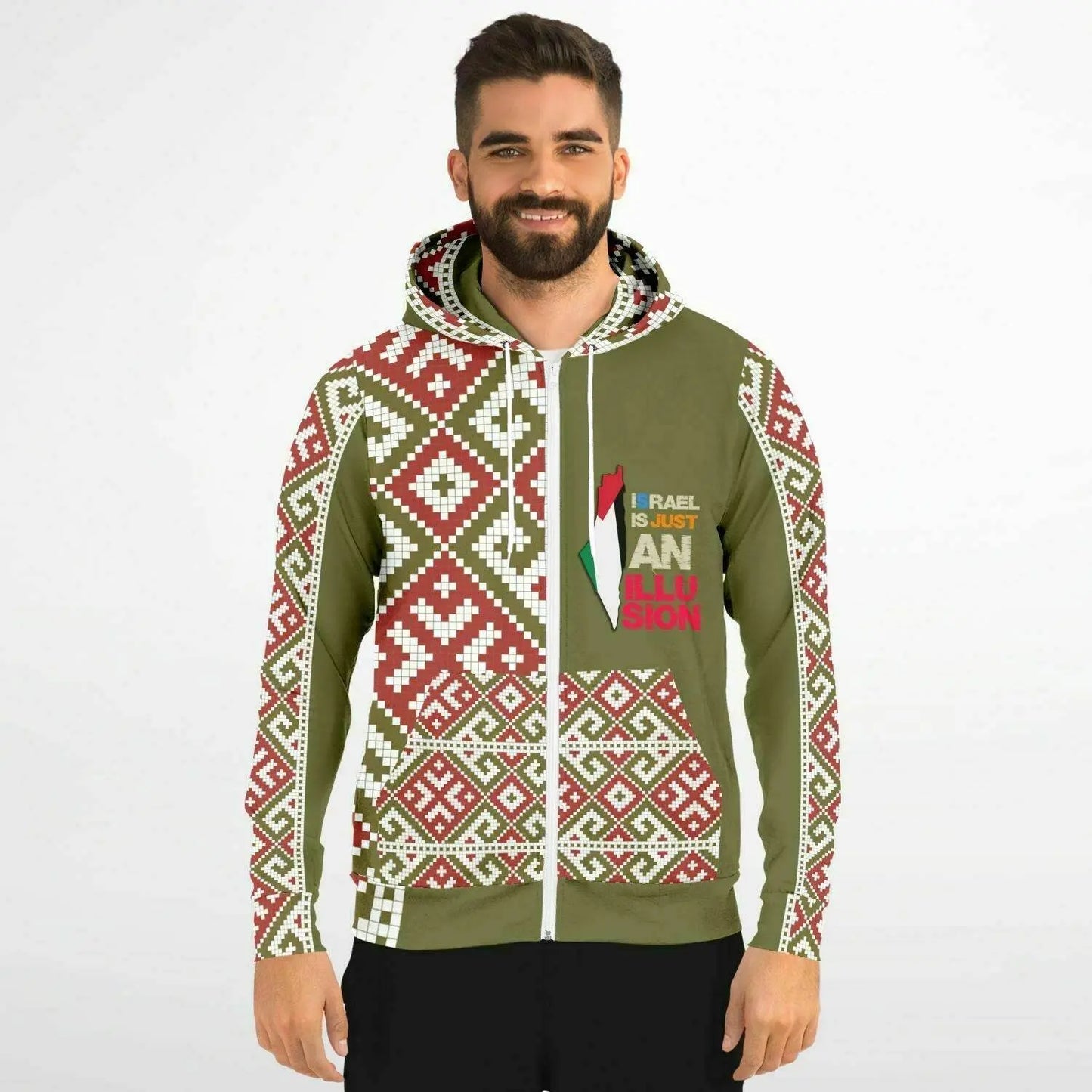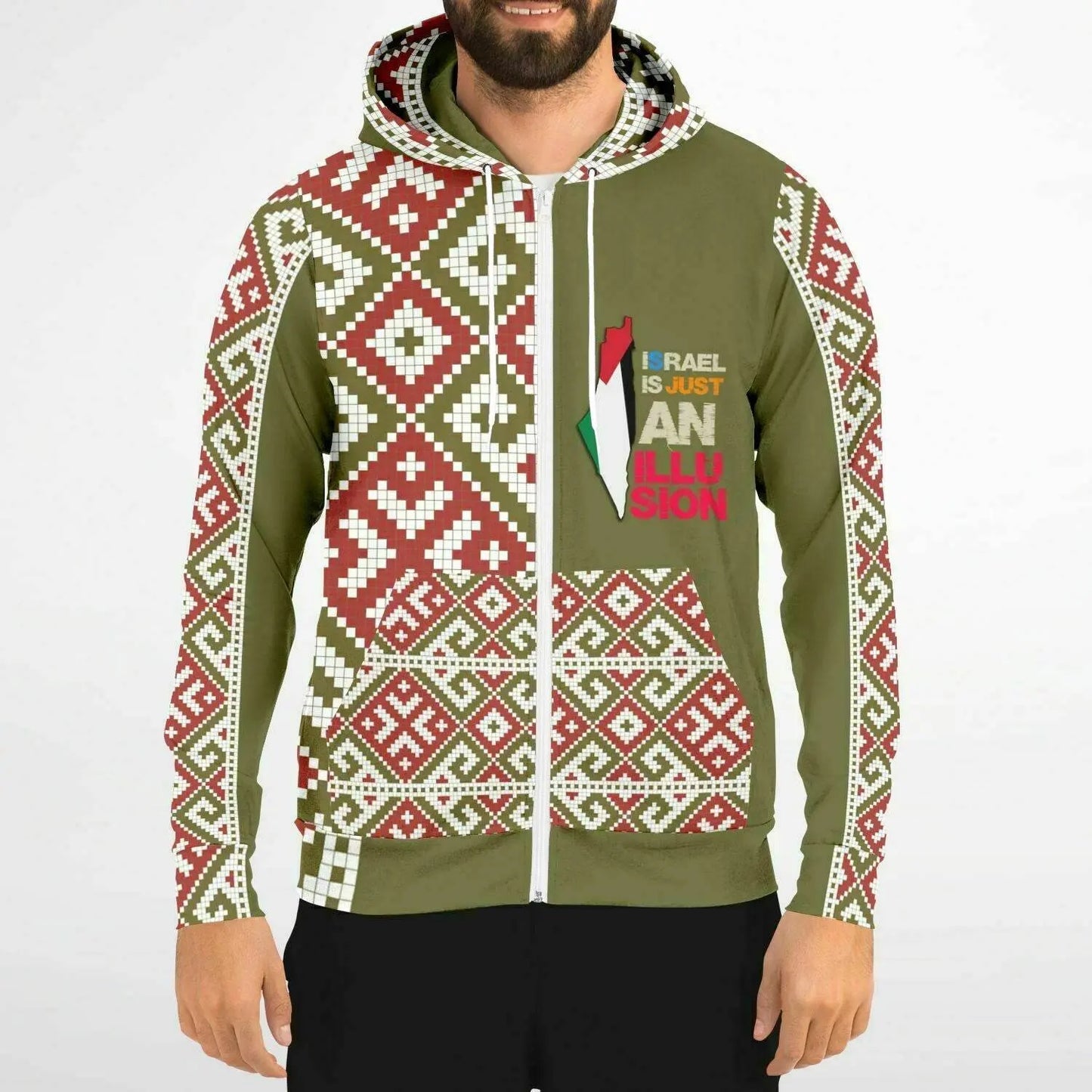 This zip-up hoodie is crafted from a premium polyester and spandex blend, making it both comfortable and durable. Each panel is individually printed, cut and sewn to ensure a flawless graphic with no imperfections. It also comes with a visible nylon zipper front closure. And high definition printing makes these a pleasure to wear for all occasions.
