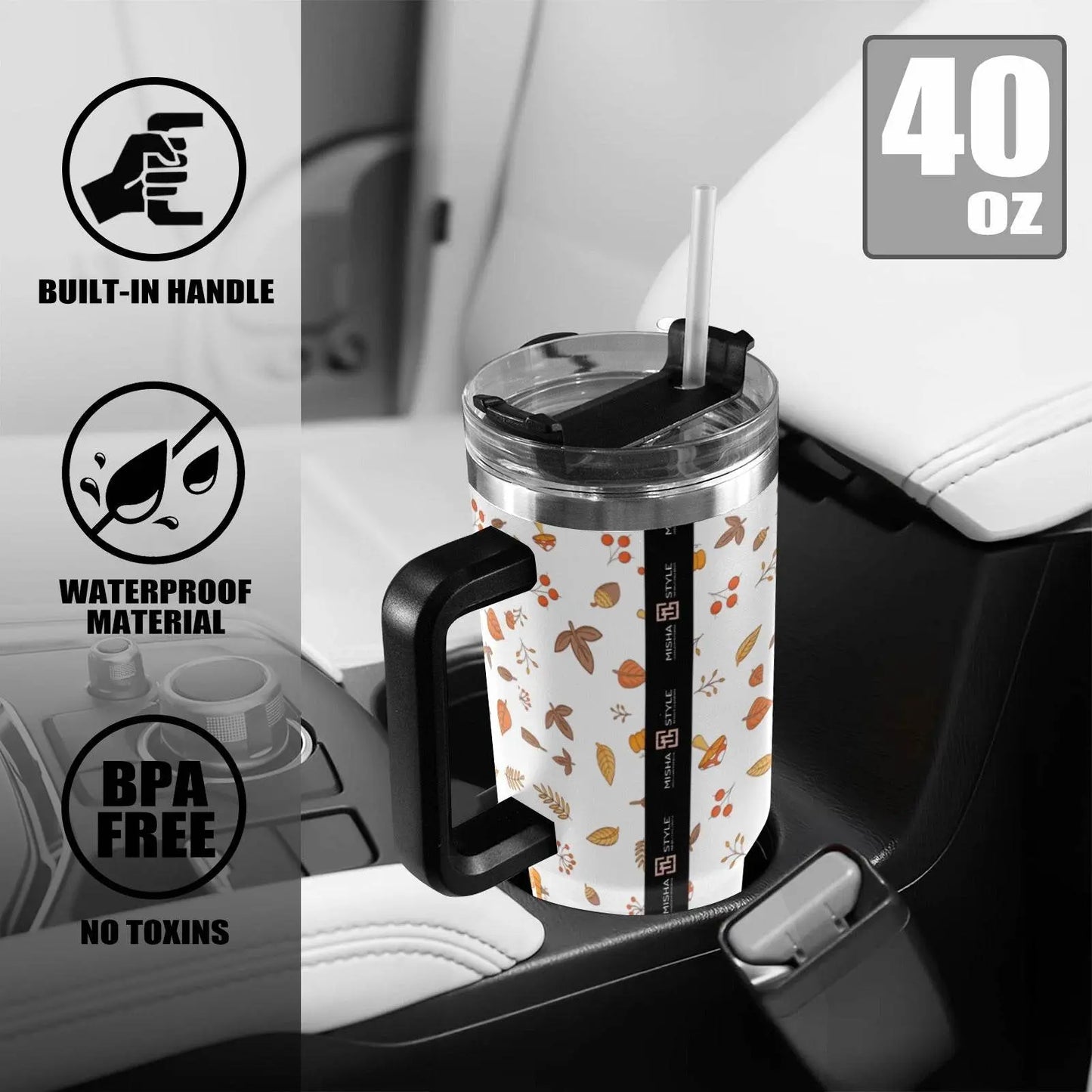 The Autumn Effect 40oz Tumbler with Black Handle is the perfect blend of elegance and practicality, making it an essential addition to your daily routine. Stay stylish and refreshed, wherever you go!