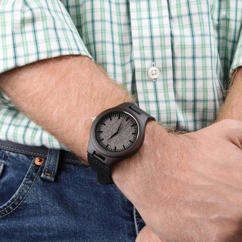 Looking for a gift as bold and timeless as your special guy? The Engraved Wooden Watch is a versatile accessory that's perfect for stylish, everyday wear. Encased in rich sandalwood and paired with a genuine leather strap, this piece is as impressive as the man who wears it. So whether it's a thoughtful birthday gift, an anniversary memento, or a long-lasting keepsake for Father's Day - be sure to get him the gift that will warm his heart for years to come. Ships in a gift box - so it can be sent directly to your lucky recipient.