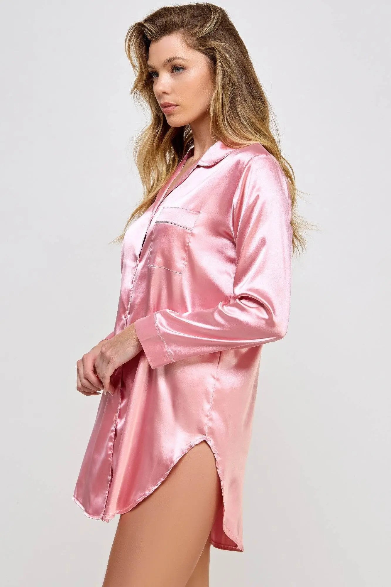 Elevate your wardrobe with our Kimberly Satin Sleepshirt, a timeless piece that effortlessly combines style and comfort. Thoughtfully designed for modern living, it brings together clean lines and flattering structure. Whether you're heading to brunch or winding down on the weekend, this piece transitions with ease. Its understated elegance makes it a wardrobe staple.