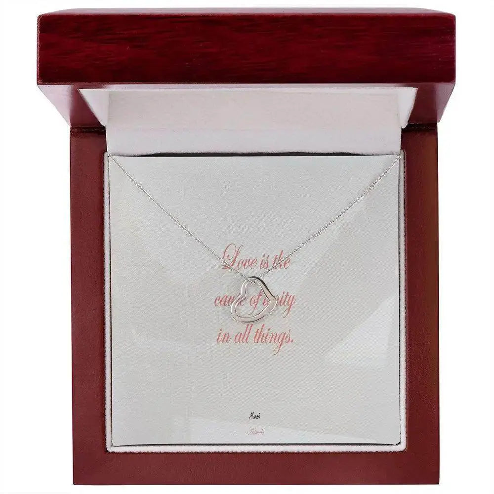 Imagine her delight when she sees this beautiful Delicate Heart Necklace, lovingly crafted in sterling silver and dipped in 14k white gold or 18k yellow gold for added luxury. This piece is pure elegance wrapped up in timeless simplicity. Trends may come and go, but this piece will last a lifetime with its classic subtle beauty.
