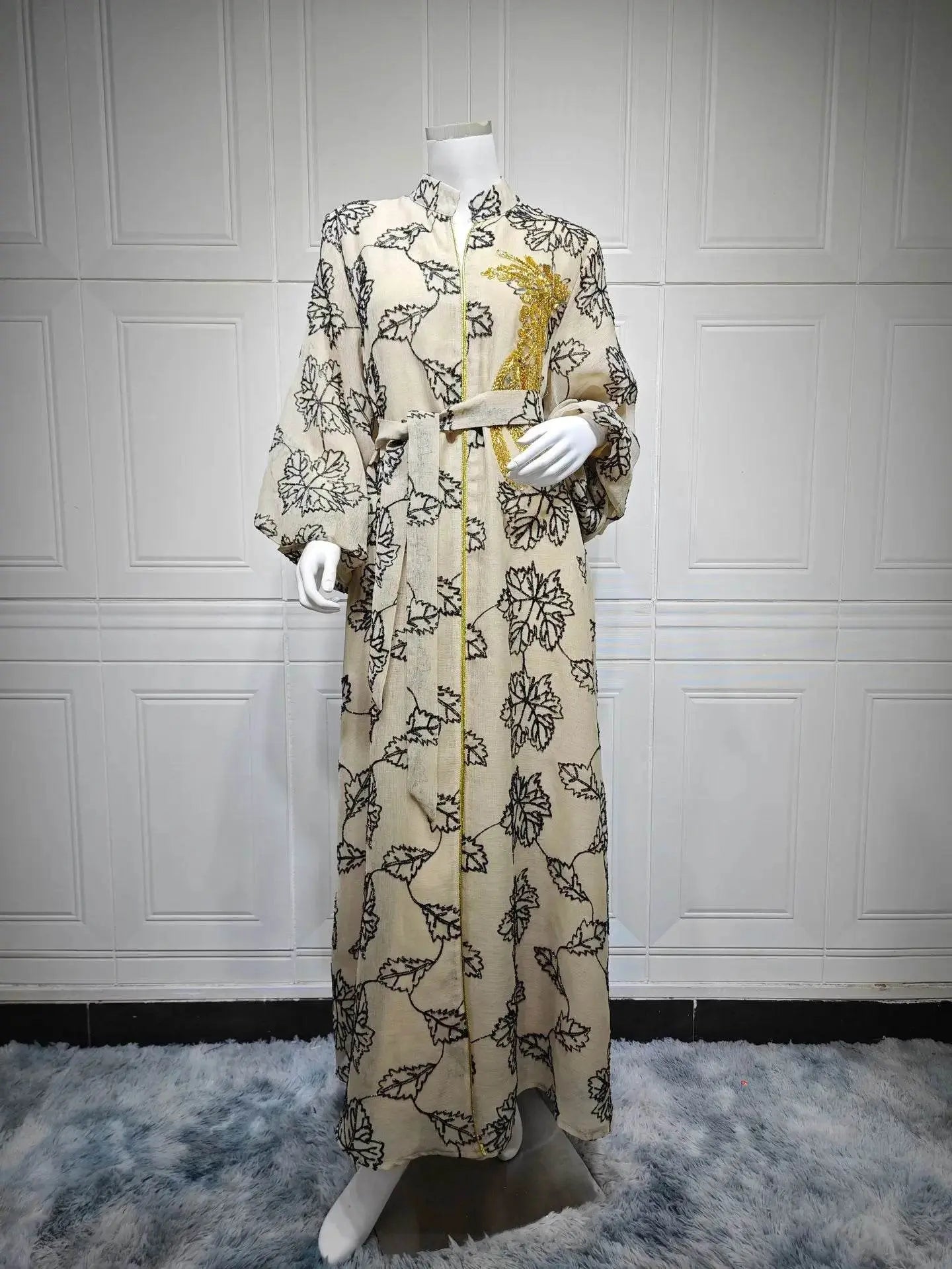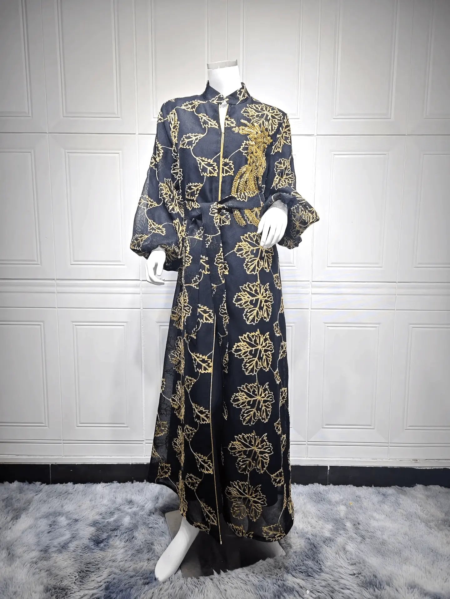 • name : Luxury Abaya Women's Wear Bead Burning Flower Evening Dress