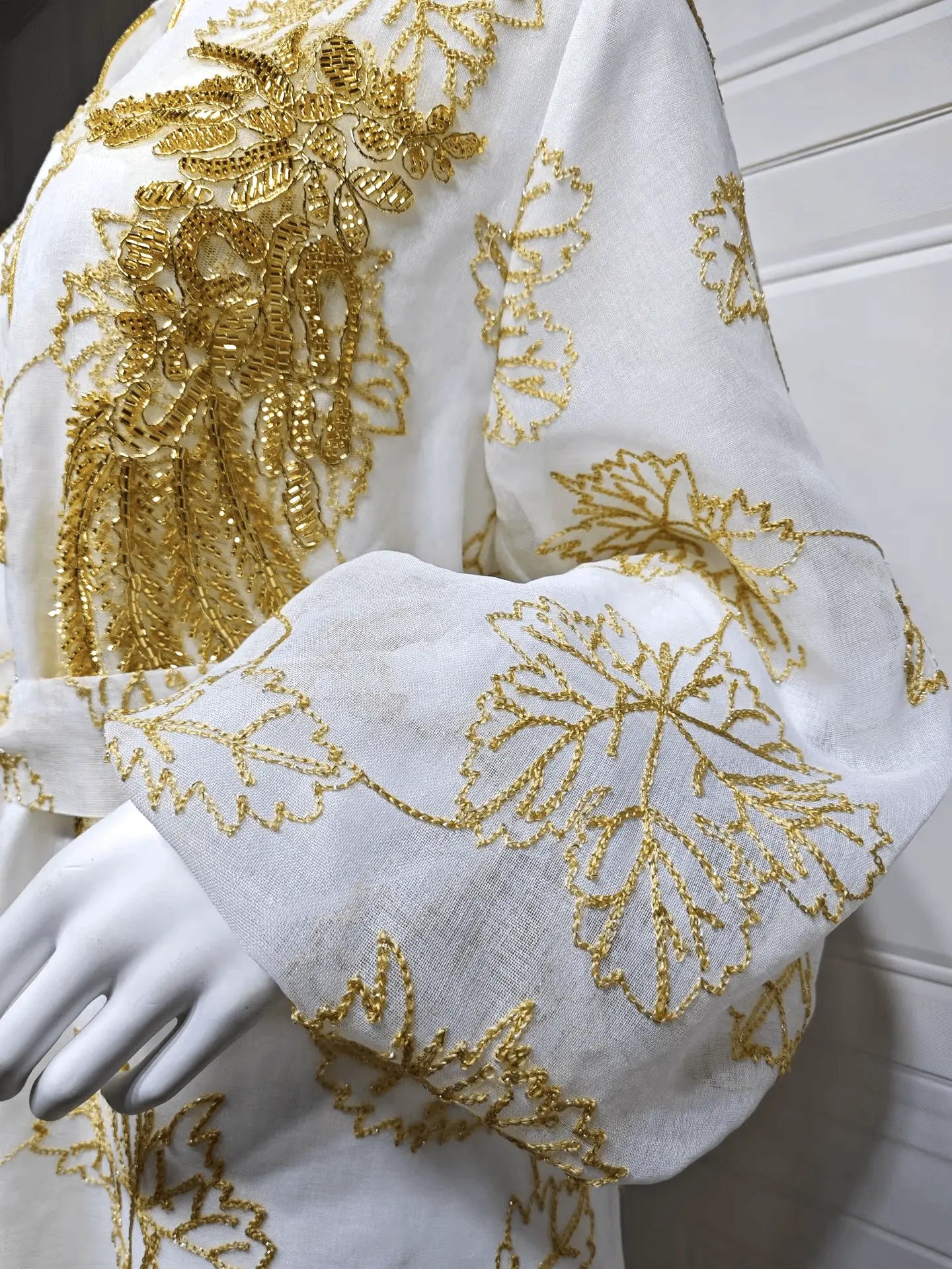 • Exquisite Beadwork: Hand-applied shimmering beads that catch the light beautifully.