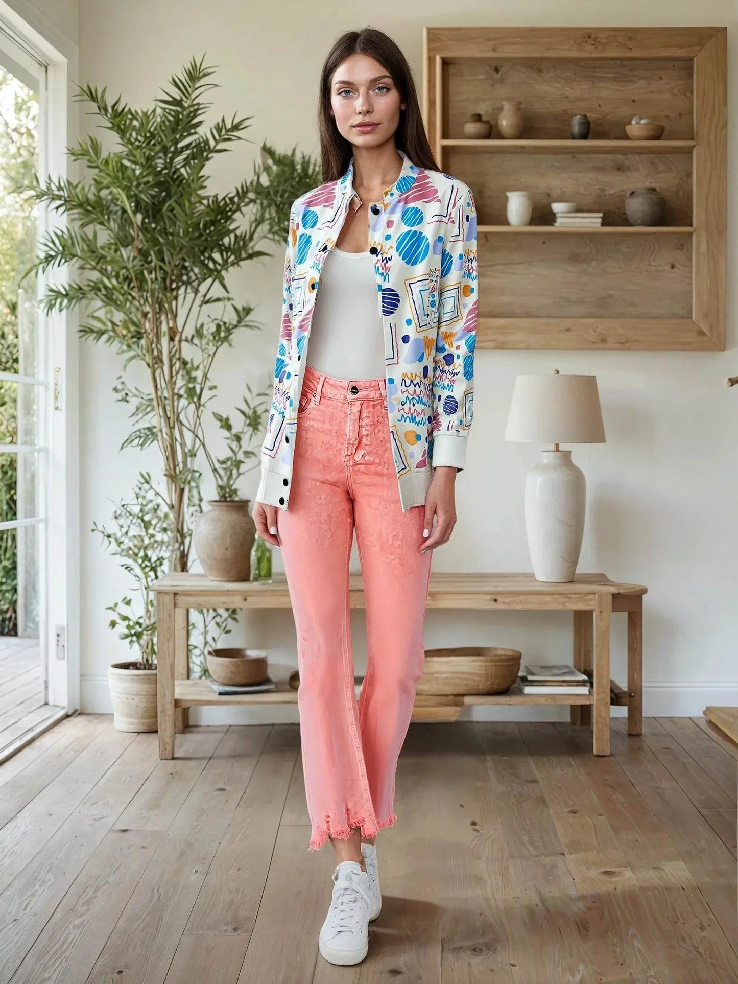 • Raw Hem Detailing: Adds a trendy, distressed look for a modern vibe.