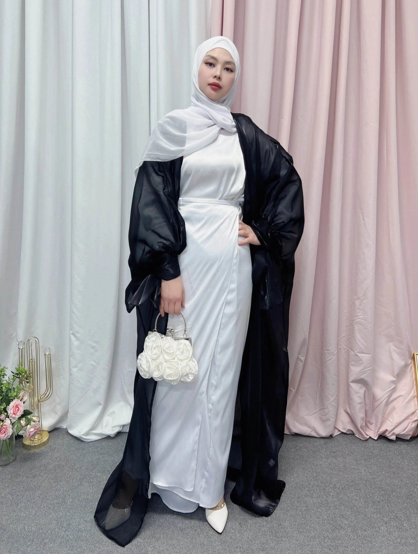 The Shiny Women Open Abaya with Ribbon Cuff is a must-have for every modern woman seeking a balance between tradition and trend. Embrace elegance, confidence, and sophistication with this stunning abaya.