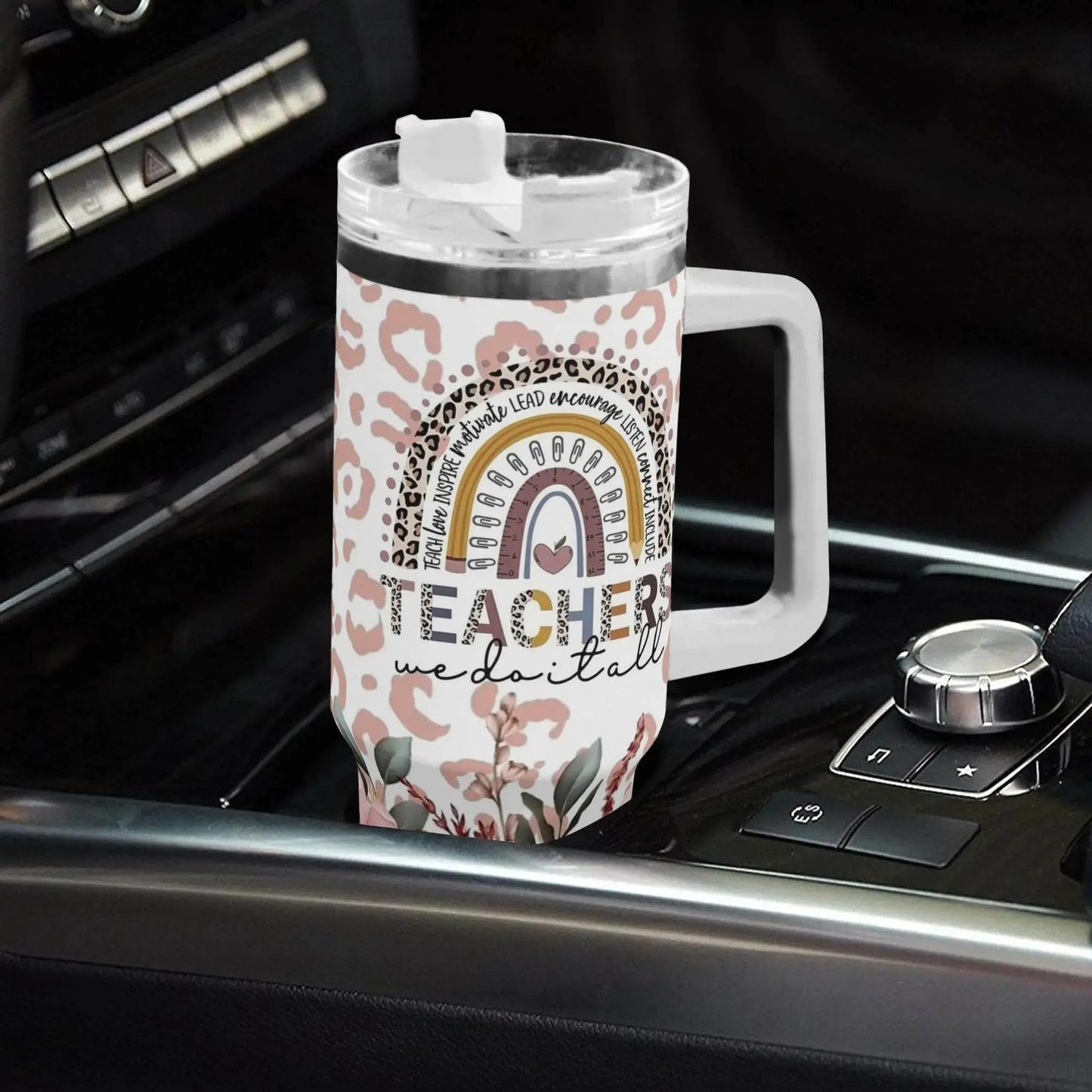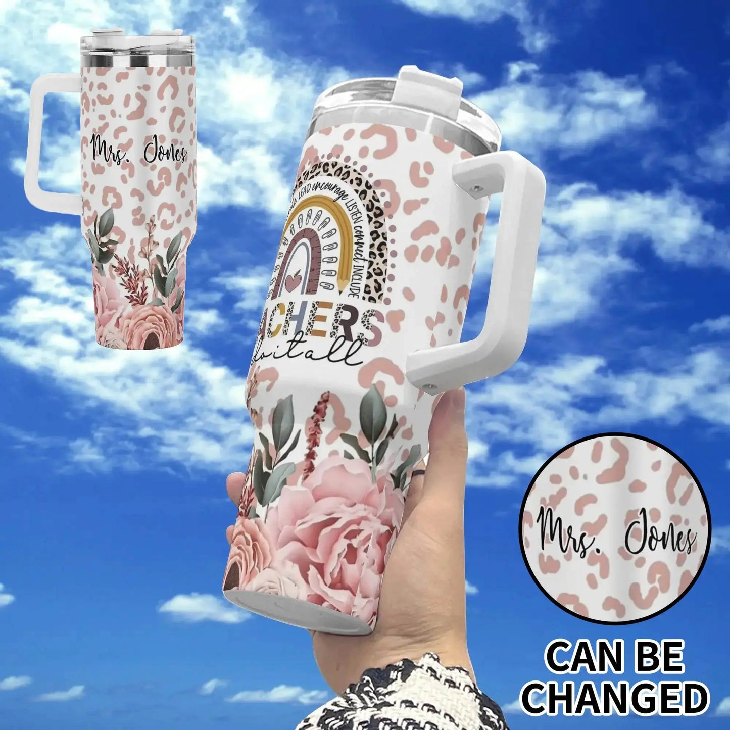 • TEACHERS 40oz Stainless Steel Tumbler With White Handle and Straw For Teacher Appreciation Gifts from Students, Custom Teacher Tumbler for Teachers Day, Birthday !