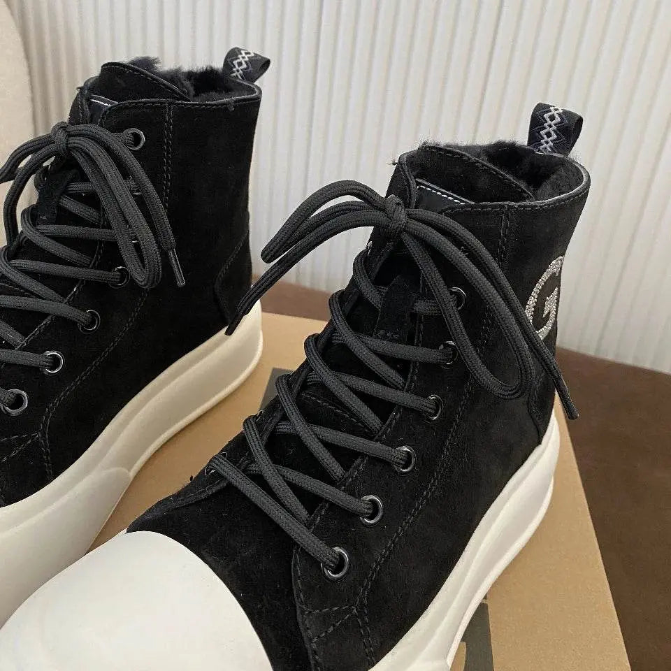 Choose the Thick Cowhide Fabric Rhinestone Snow Boots to stay warm, secure, and effortlessly stylish during the winter season—an ideal combination of luxury and practicality for any occasion.