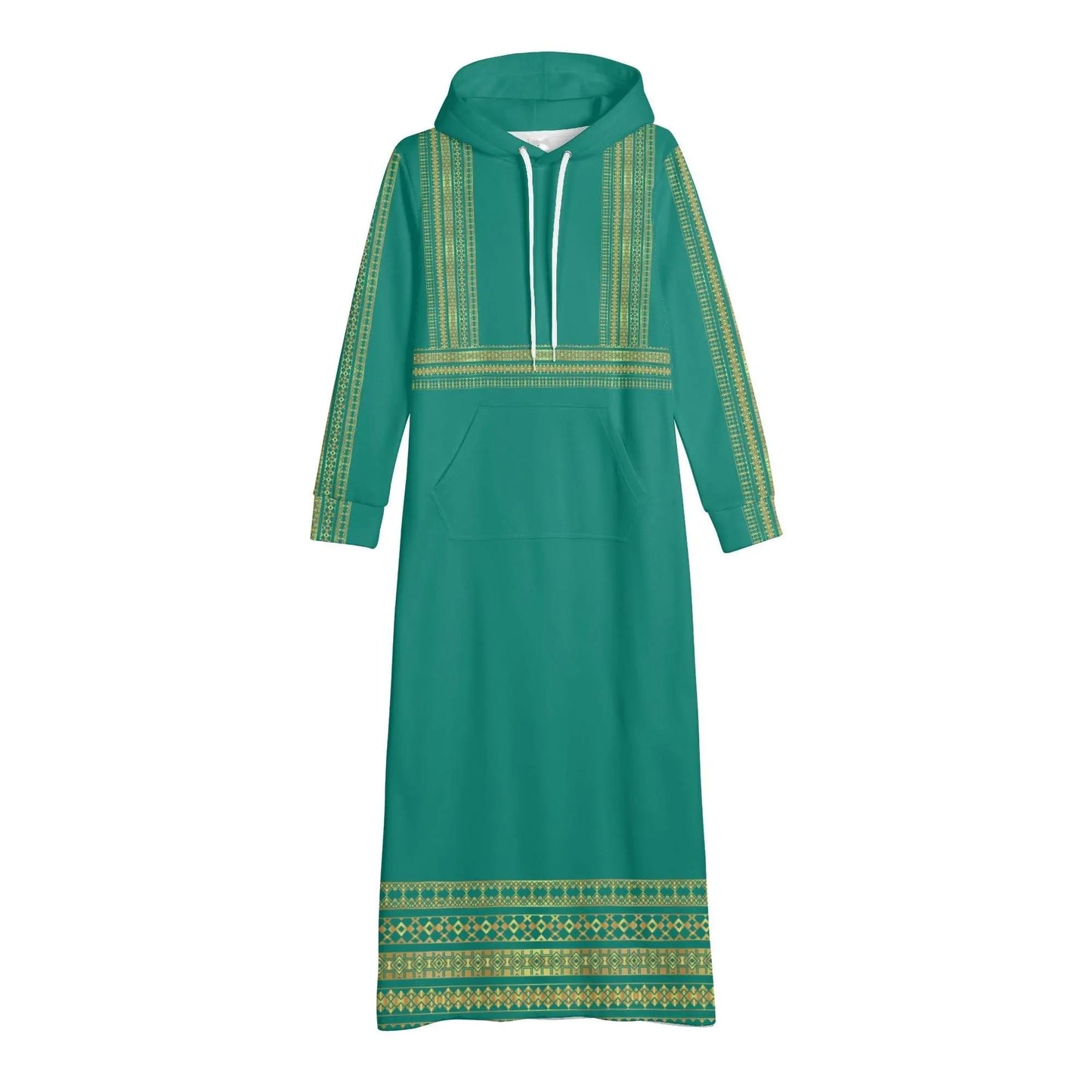 Velvet Casual Green Cyan Turquoise Long Hoodie Dress