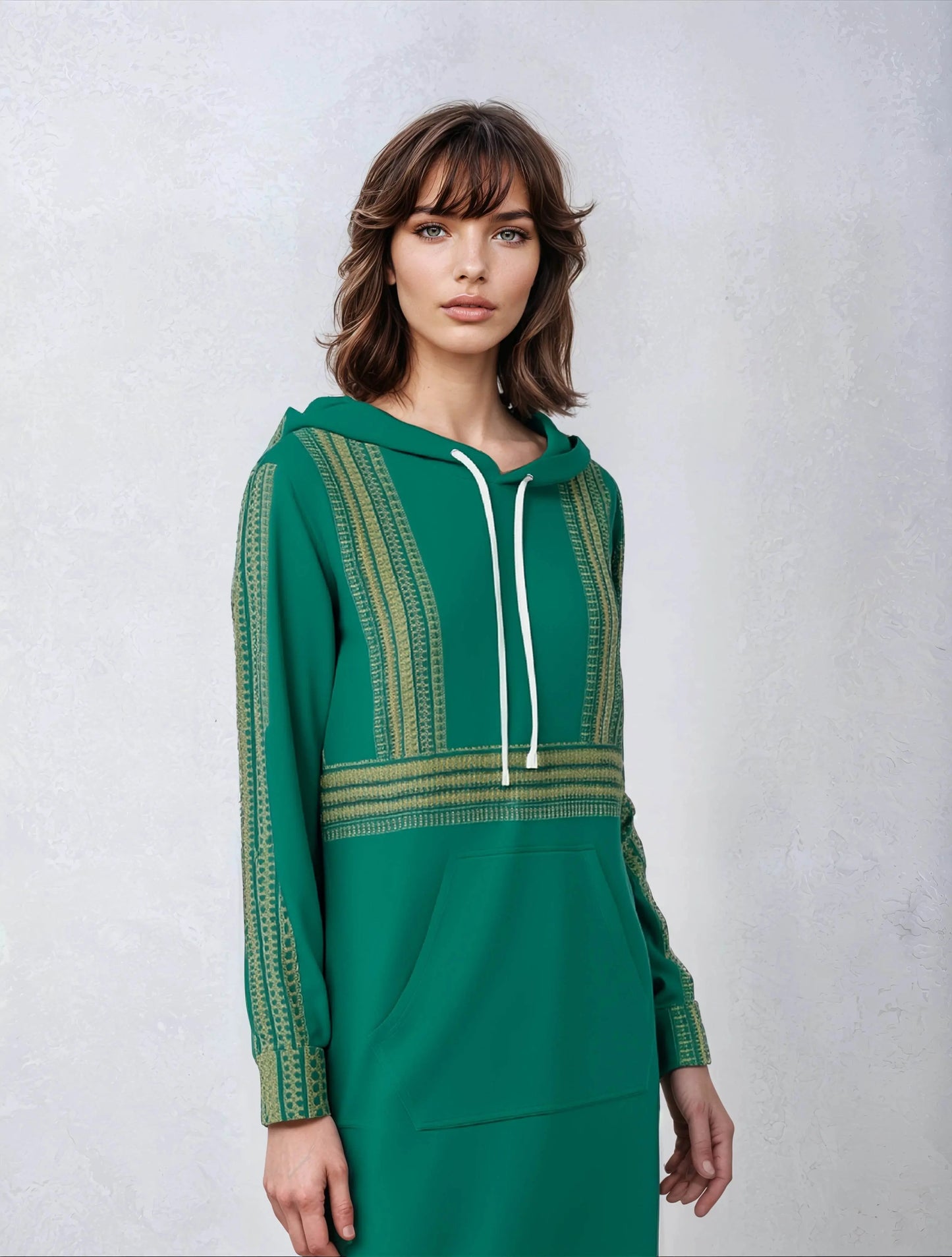 • Stylish Hoodie Design: The hood worn attached to the dress also presents much more relaxed and trendy visual image suitable for leisure that the uniform type of jacket and blouse would offer.