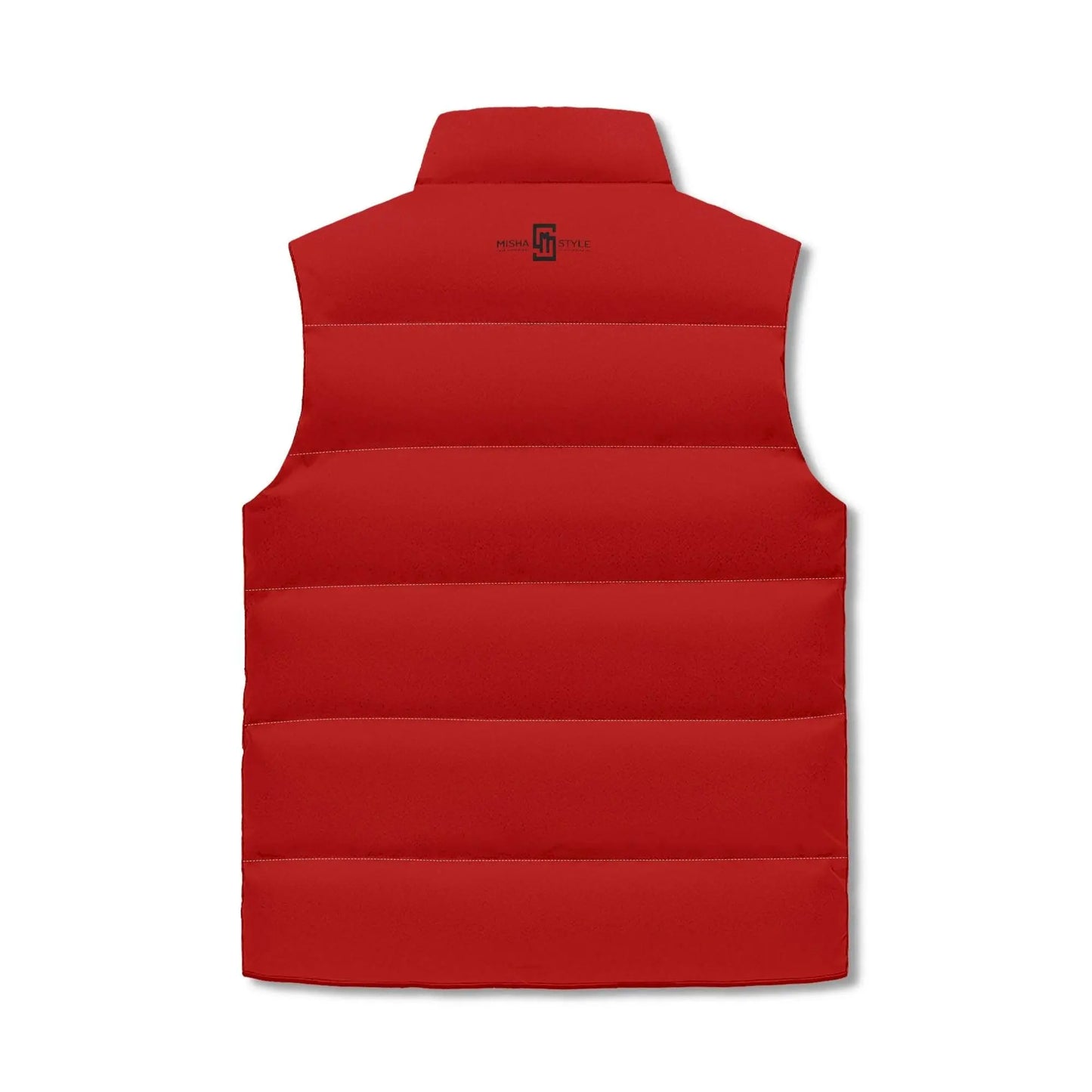 The Velvet Red Lightweight Stand Collar Zip-Up Puffer Vest is a fashion-forward essential for anyone looking to stay warm and stylish. Add this elegant yet functional piece to your collection and enjoy the perfect blend of comfort and sophistication.