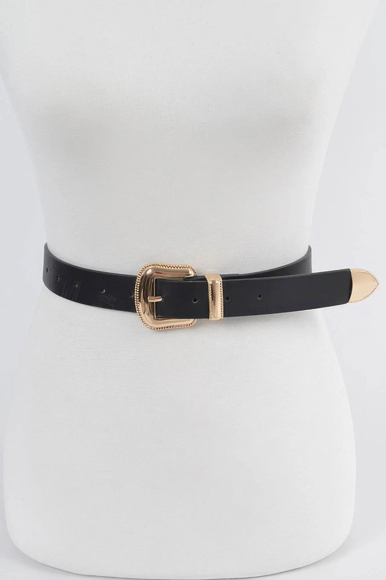 Step up your style game with the Metal Faux Leather Belt, an essential accessory that combines timeless charm with modern sophistication. Featuring a sleek gold buckle and classic faux leather finish, this belt is perfect for cinching your favorite dresses or adding polish to your workwear.