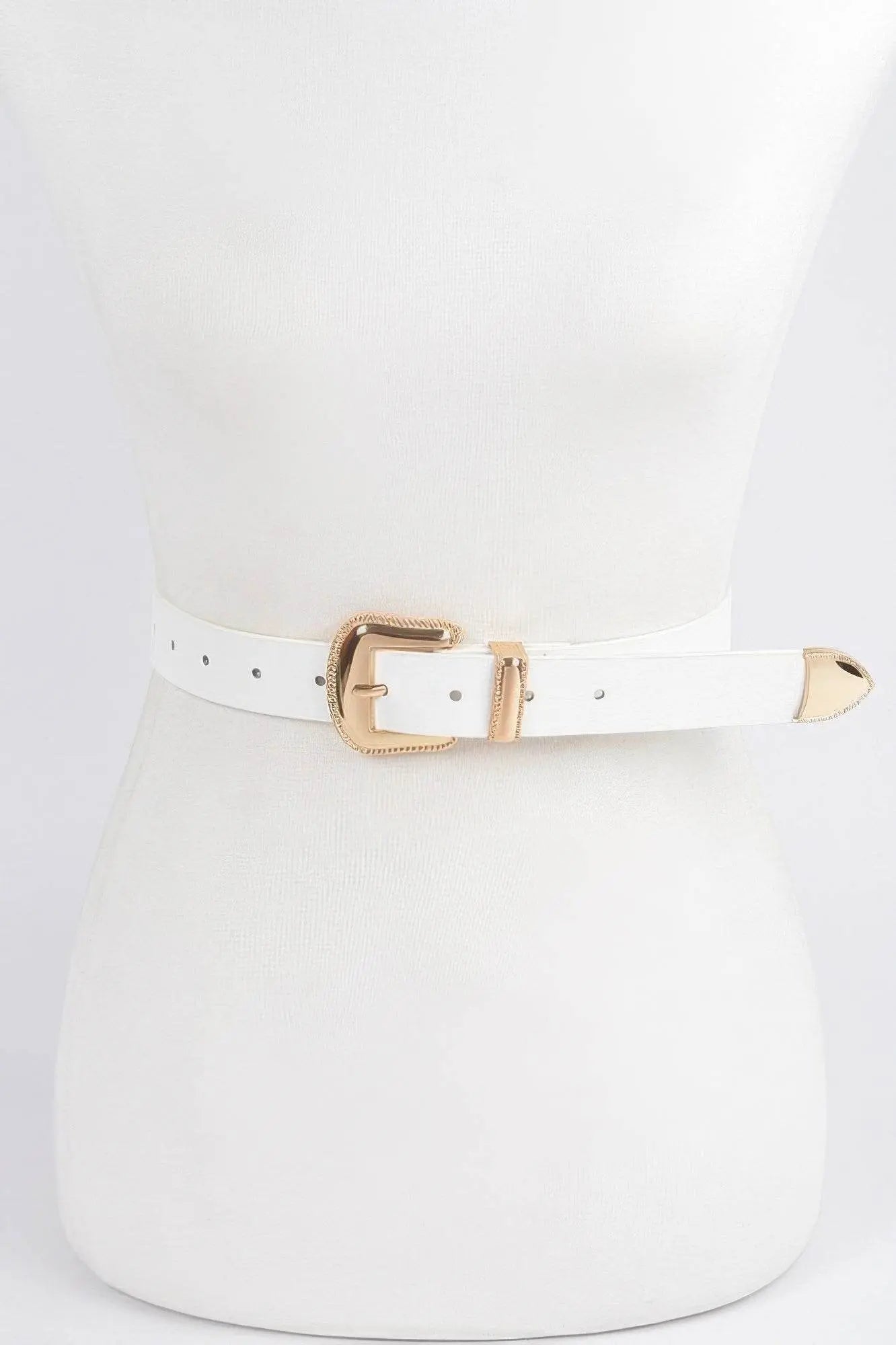 Crafted from high-quality faux leather, this belt offers a refined leather-like texture that mimics the look and feel of genuine leather, while remaining completely cruelty-free. The belt features a sleek metallic buckle that serves as both a fastening mechanism and a standout design element. Its adjustable length ensures a customizable fit for various waistlines, and the reinforced stitching along the edges adds to its durability. The color palette is carefully chosen to complement a wide range of wardrobes—making it versatile for casual, workwear, or evening styles.