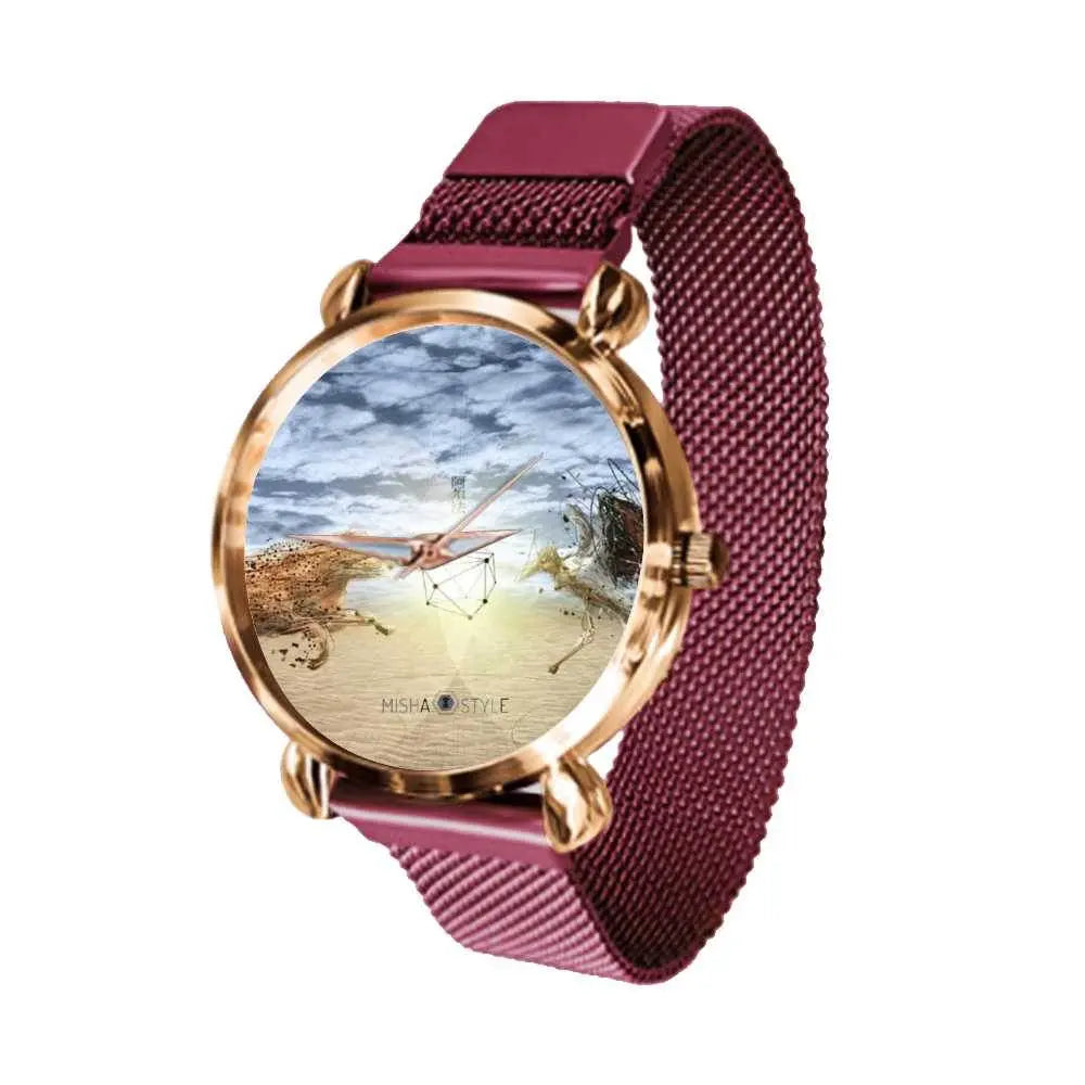 · [Type]: Alloy strap magnetic buckle quartz watch