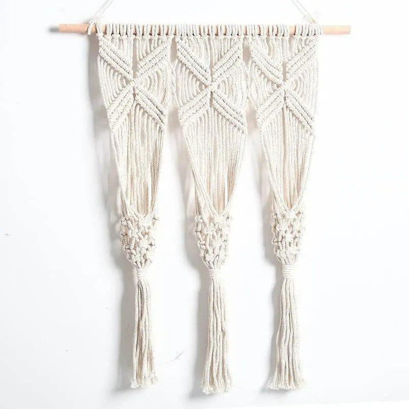 The Woven Tapestry Bohemian Dried Flower Pot Rack features a beautifully handcrafted design using natural cotton rope and durable wooden supports. The intricate macramé weaving showcases traditional craftsmanship, offering visual interest through layered textures and symmetrical patterns. Its boho-inspired color palette—usually a blend of warm neutrals or muted earthy tones—brings softness and serenity to your walls. The design includes one or more built-in holders or loops, ideal for hanging dried flower bouquets, small indoor plants, or decorative jars.