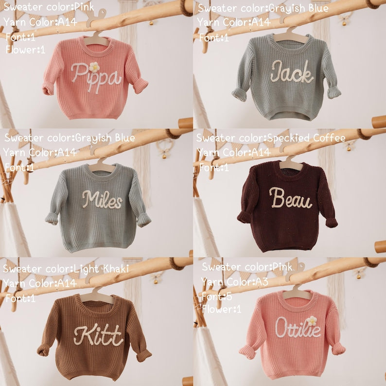 Each sweater is carefully hand-embroidered, ensuring a unique and personal design that reflects your child’s individuality. Made with gentle, breathable fabric, it keeps babies warm without causing irritation to sensitive skin. The sweater’s durable stitching and high-quality yarn ensure it withstands daily wear and frequent washing while maintaining its softness and shape. Available in various sizes, it provides a comfortable fit for babies as they grow. The timeless design makes it suitable for both casual outings and special family gatherings.